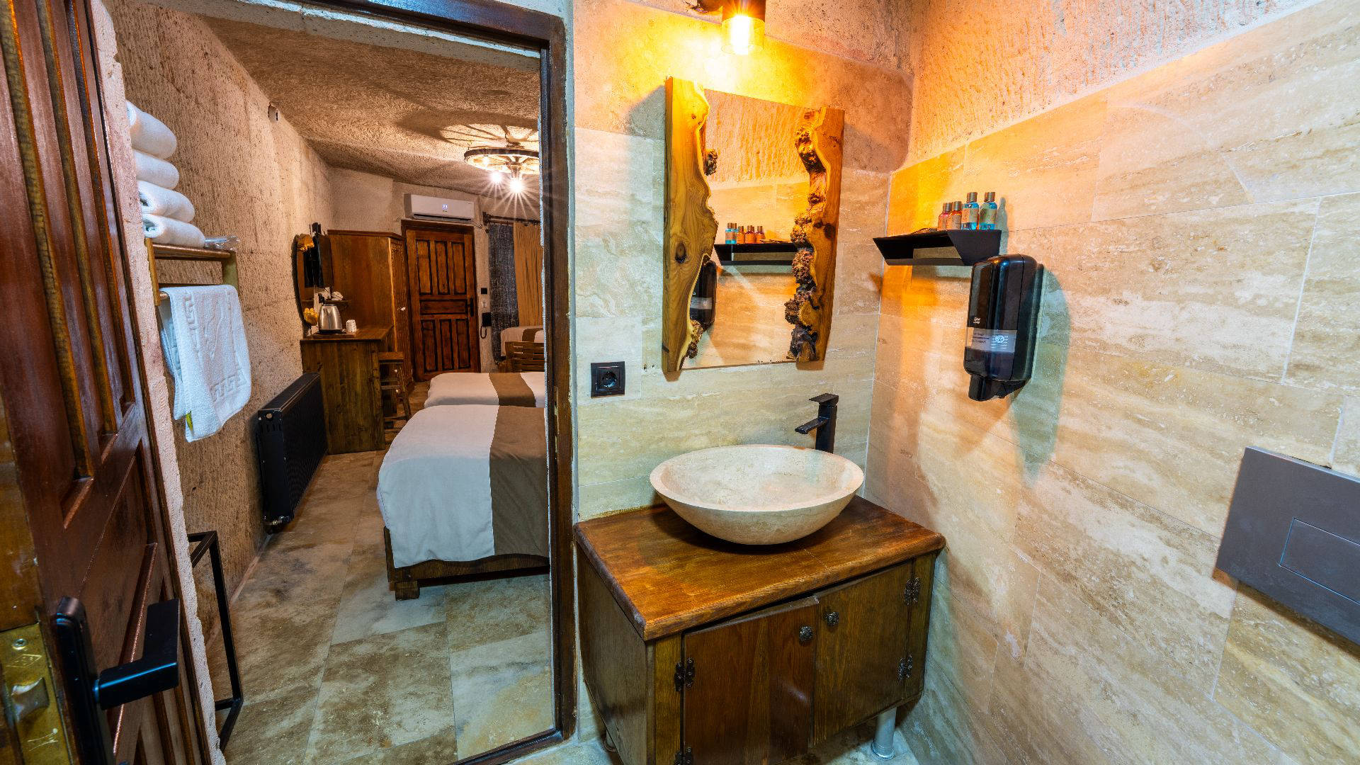 Sunset Cave Hotel Cappadocia is located in Göreme, Nevşehir, also known as the rocky wonderland shaped by millions of years of natural phenomena. Erosion shaped the incredible landscape of Turkey's Göreme valley, but thousands of years ago humans took a clue from Mother Nature and began carving an incredible chamber and tunnel complex into the soft rock.